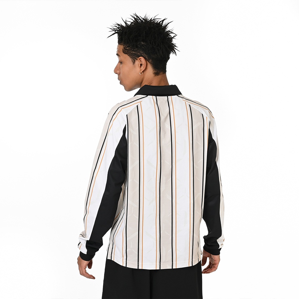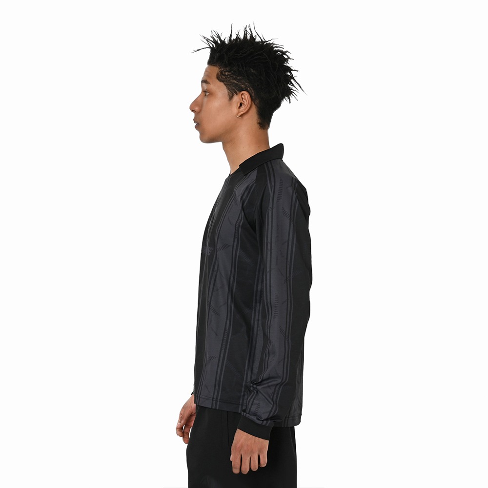 コットンライクなポリエステル100%素材を使用し、襟付きポロスタイルとリブ仕様の袖口デザインが、アクティブからオフピッチまで対応。